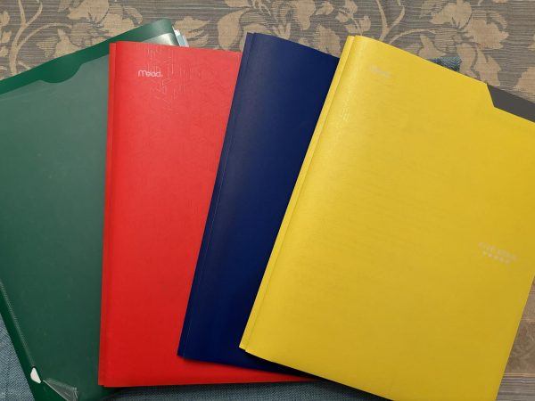 I think Math is blue, English is red, Science is green, and History/Social Studies is yellow.